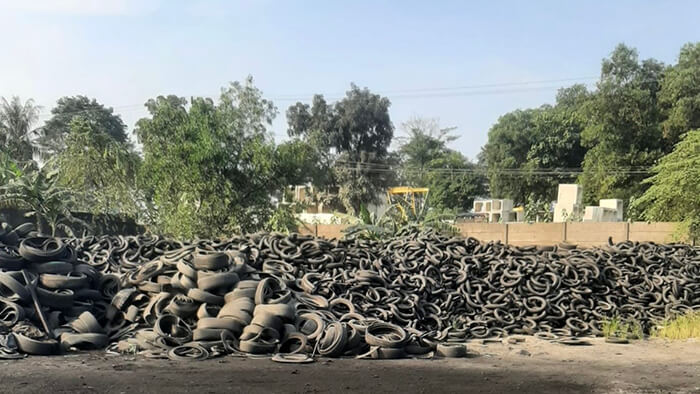 Ban bekas dari berbagai sumber dikumpulkan, dipilah dan dibersihkan dari kontaminasi agar siap untuk dipakai pada proses pyrolysis.